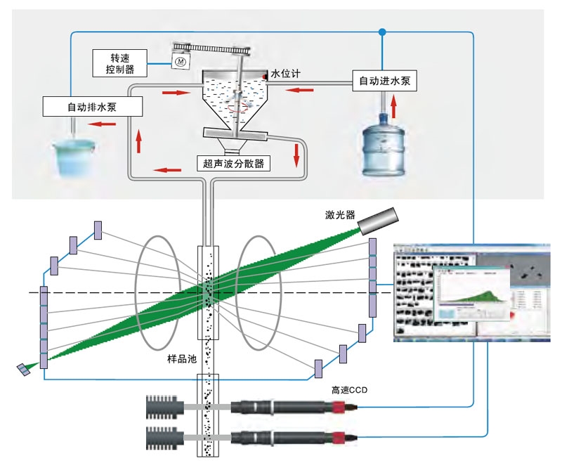 顯微圖像系統(tǒng) | 進(jìn)口高速 CCD 配置 白光面光源+LED 藍(lán)光點(diǎn)光源 鏡頭倍數(shù) 0.5x 和 10x 圖像識(shí)別速率 120 幀/秒 最大顆粒識(shí)別速度 10000 個(gè)/分鐘 包括長(zhǎng)徑比、圓形度、最大粒徑等 20 個(gè)參數(shù) |