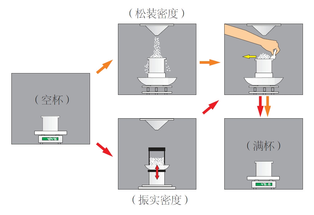 ●松裝密度:松裝密度是指粉體在特定容器中處于自然充滿狀態(tài)后的密度。